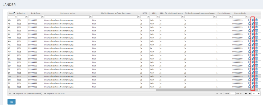Möchten Sie ein neues EU-Land in unser System integrieren? Dann empfehlen wir Ihnen, ein bereits vorkonfiguriertes EU-Land als Vorlage zu verwenden und zu duplizieren. Dies erleichtert Ihnen den Prozess erheblich. Gleiches gilt für die Hinzufügung eines Nicht-EU-Landes: Nutzen Sie ein bestehendes, vorkonfiguriertes Nicht-EU-Land als Basis für Ihre neue Konfiguration. Auf diese Weise minimieren Sie den Arbeitsaufwand und reduzieren das Risiko von Fehlern bei der Einrichtung.