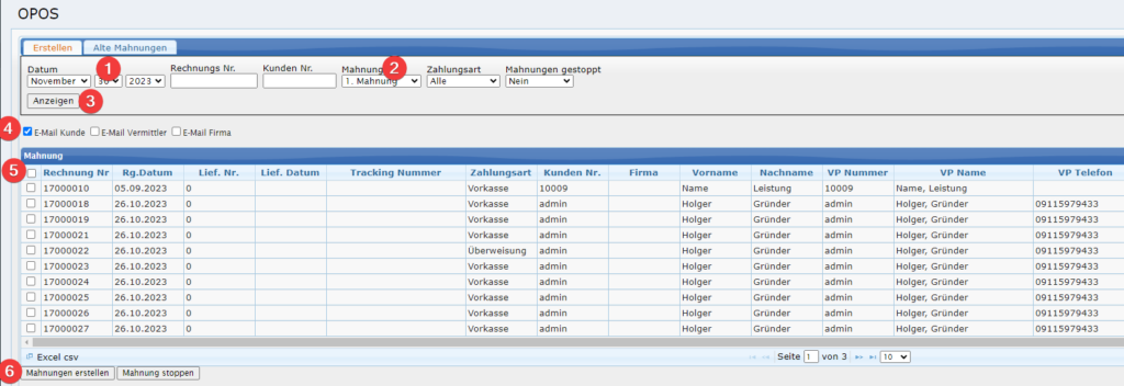 Erstellung der Mahnungen