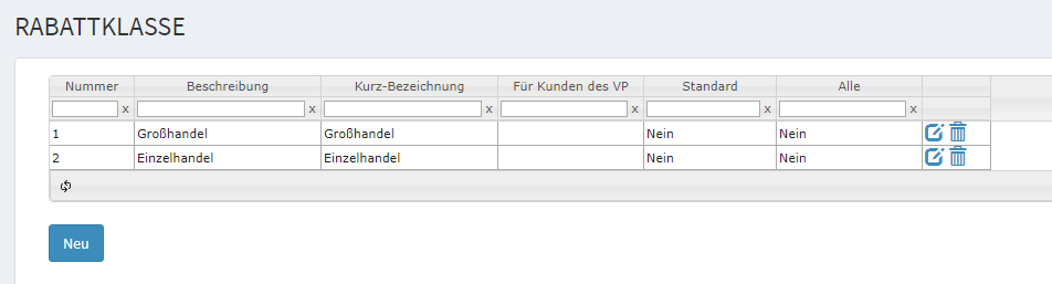 - Nach dem gleichen Prinzip legen Sie alle Rabattmöglichkeiten für alle Rabattklassen an.