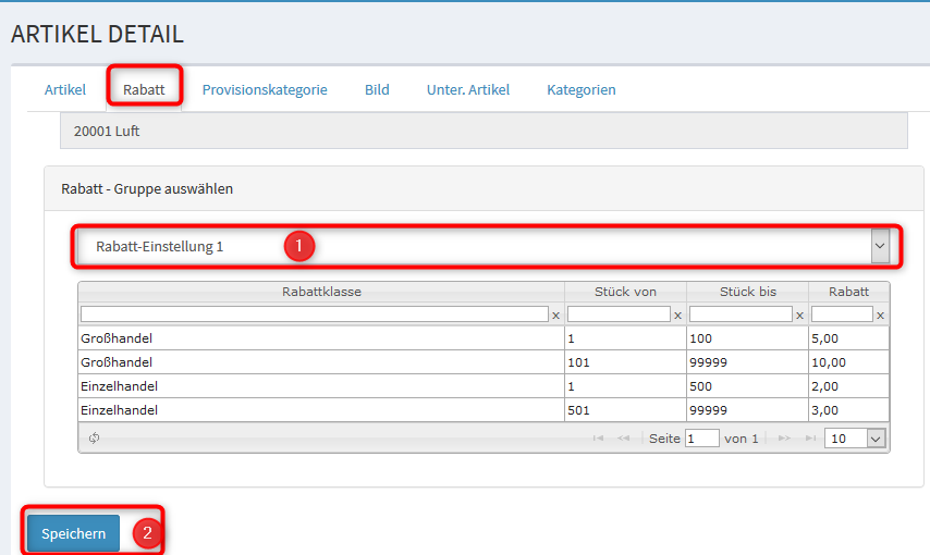 3. Rabatt dem Artikel zuordnen.