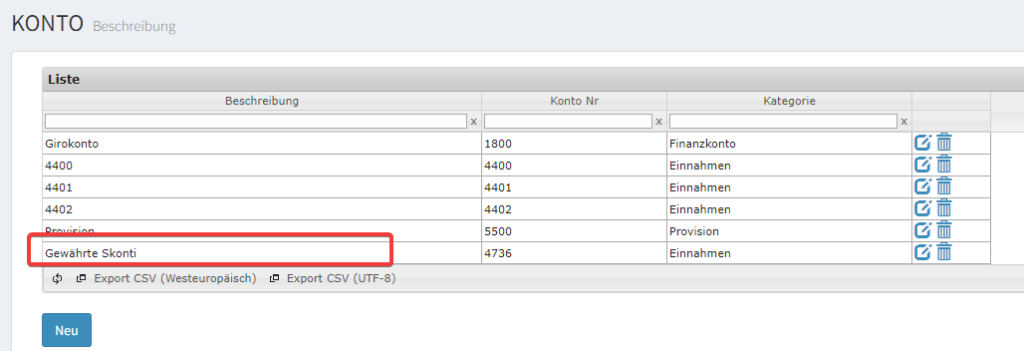 Schritt 1: Konto für gewährtes Skonto anlegen