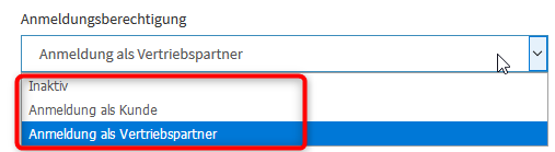 Anmeldung als Vertriebspartner: Dieser Partner kann sich im Office anmelden und hat alle Rechte des Vertriebspartners.